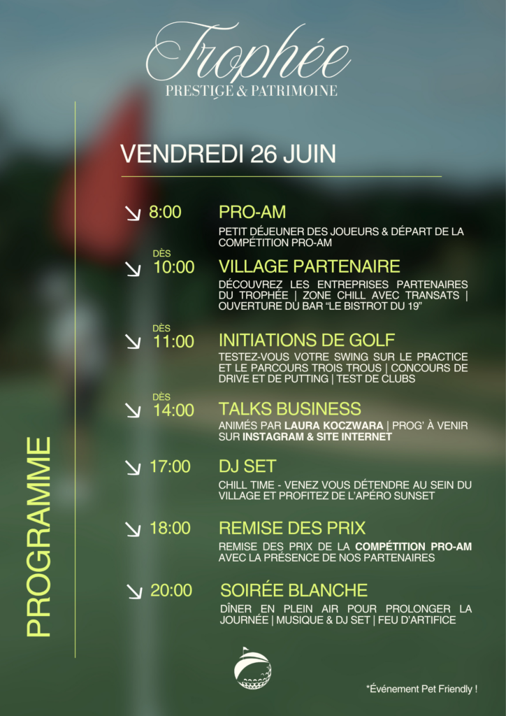 Le Trophée Prestige & Patrimoine sera de retour les 26 et 27 Juin 2026, dans le cadre exceptionnel du Domaine et Golf de Roncemay ! Cette prochaine édition promet une journée riche en rencontres et découvertes, au cœur d’un village d’entreprises animé, de compétitions de golf et d’expériences inédites.